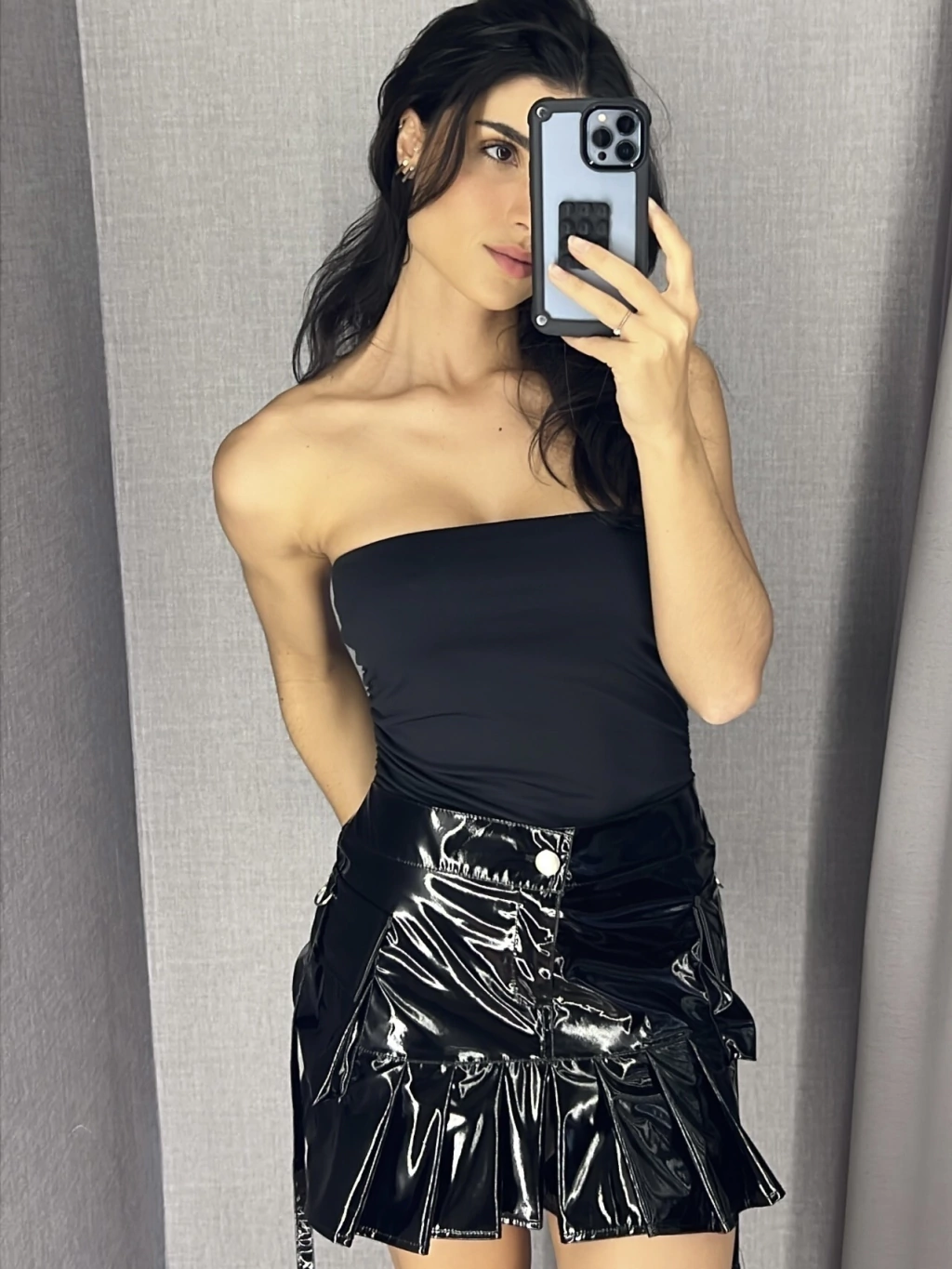 BODY DE MALHA, TOMARA QUE CAIA, COM FRANZIDO LATERAL E FECHO INFERIOR.
