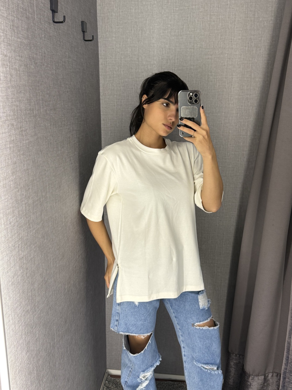 CAMISETA BÁSICA LISA, MODELO OVERSIZED, COM ZÍPERS LATERAIS.